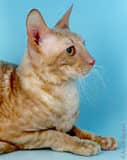 Debido a su delgada estructura ósea, el Cornish Rex puede parecer casi delicado, pero este gato es atlético y nada frágil. El Cornish Rex tiene una cabeza pequeña y estrecha, con orejas grandes y ojos que parecen grandes para el tamaño de la cabeza. Tiene una nariz romana, un mentón fuerte y patas largas y esbeltas. La cola también es delgada y larga, con gran flexibilidad. El pelaje del Cornish Rex es único entre los gatos. Es sedoso y suave, pero forma ondas que se asemejan a las trenzas africanas.