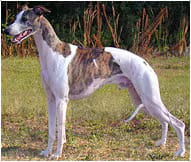 El perro es en realidad un poco más curvilíneo, con un lomo más arqueado. Al igual que un galgo, el whippet está hecho para la velocidad. Las patas son largas y delgadas, el pecho profundo, el abdomen recogido, el cuerpo relativamente estrecho y todo el perro es musculoso. La cola larga, similar a un látigo, se lleva naturalmente baja. Los ojos son grandes y brillantes. En tamaño, el whippet es lo suficientemente pequeño como para sentarse en el regazo y lo suficientemente grande como para ser un buen compañero de carreras. Aunque los whippets miden entre 48 y 53 cm de alto, con su complexión delgada, pesan solo entre 9 y 18 kg. La mayoría probablemente pesa alrededor de 13 kg. El pelaje es liso y corto, aterciopelado al tacto. El pelaje corto y la falta de grasa corporal se combinan para hacer que el whippet deteste el frío. Estos perros son misiles buscadores de calor que les gusta acurrucarse en la cama para calentarse. Afortunadamente, están prácticamente libres de olor a perro. Los whippets vienen en casi todos los colores, sin que ningún color prefiera a otro.|